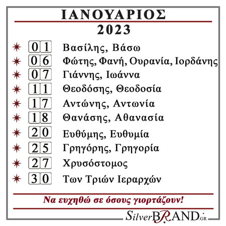 Διαβάστε το Εορτολόγιο Ιανουαρίου 2023 και ευχηθείτε σε όσους γιορτάζουν.