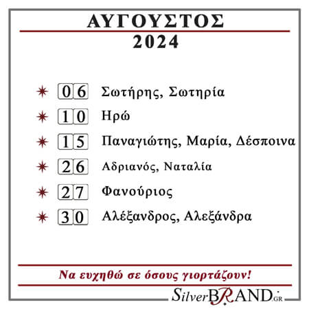 Διαβάστε το Εορτολόγιο Αυγούστου 2024 και ευχηθείτε σε όσους γιορτάζουν.