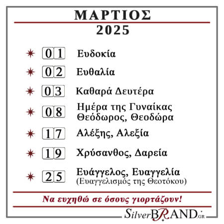 Διαβάστε το Εορτολόγιο του Μαρτίου 2025 και ευχηθείτε σε όσους γιορτάζουν.