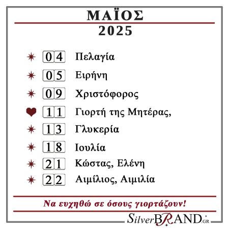 Διαβάστε το Εορτολόγιο Μαΐου 2025 και ευχηθείτε σε όσους γιορτάζουν.