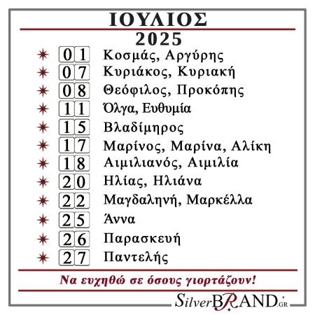 Διαβάστε το Εορτολόγιο Ιουλίου 2025 και ευχηθείτε σε όσους γιορτάζουν.