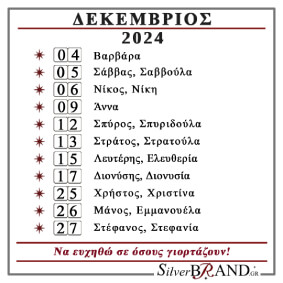 Διαβάστε το Εορτολόγιο Δεκεμβρίου 2024 και ευχηθείτε σε όσους γιορτάζουν.