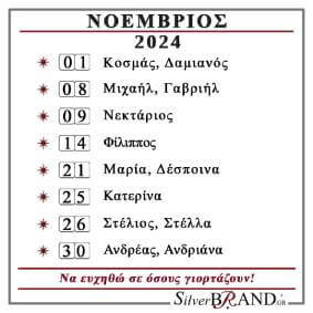 Διαβάστε το Εορτολόγιο Νοεμβρίου 2024 και ευχηθείτε σε όσους γιορτάζουν.