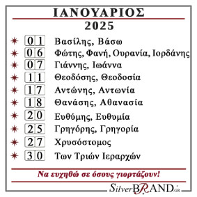 Διαβάστε το Εορτολόγιο Ιανουαρίου 2025 και ευχηθείτε σε όσους γιορτάζουν.