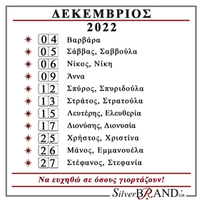 Διαβάστε το Εορτολόγιο Δεκεμβρίου 2022 και ευχηθείτε σε όσους γιορτάζουν.