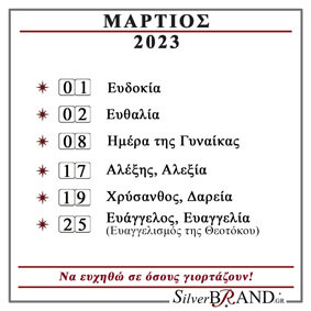 Διαβάστε το Εορτολόγιο του Μαρτίου 2023 και ευχηθείτε σε όσους γιορτάζουν.
