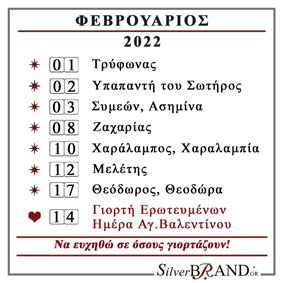 Διαβάστε το Εορτολόγιο Φεβρουαρίου 2022 και ευχηθείτε σε όσους γιορτάζουν.