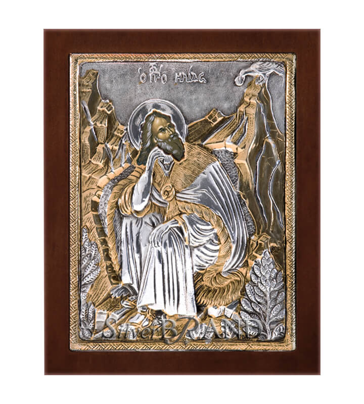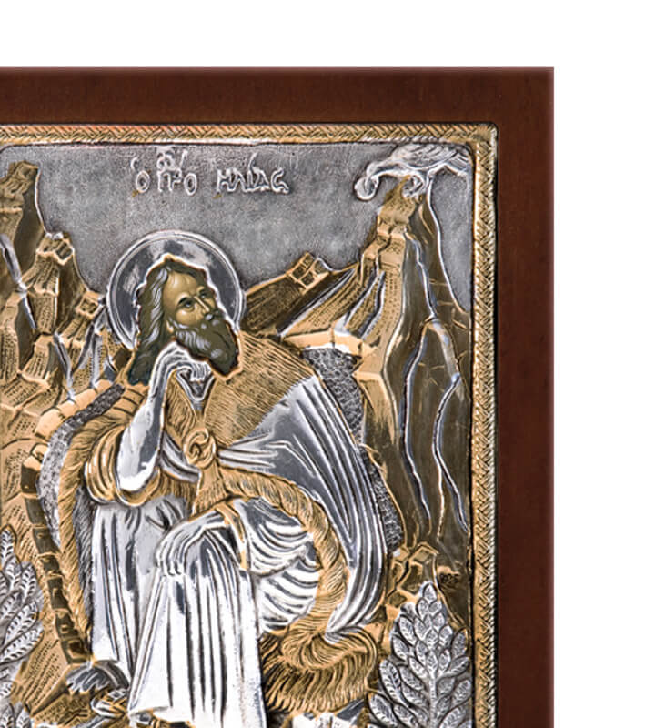 Ακριβές αντίγραφο Βυζαντινής Ασημένιας εικόνας που απεικονίζει τον Προφήτη Ηλία. Κατασκευάζεται με σεβασμό στην παράδοση και έμφαση στην ποιότητα σε επιλεγμένο ελληνικό εργαστήριο από ασήμι 925o, με τοπικές επιχρυσώσεις από χρυσό 24k.