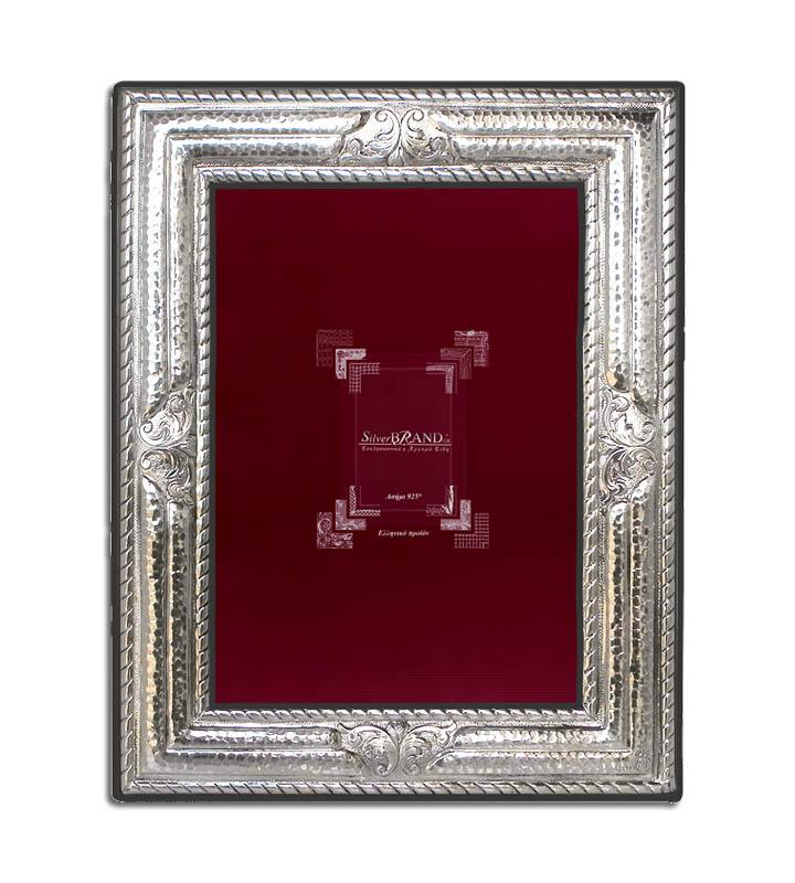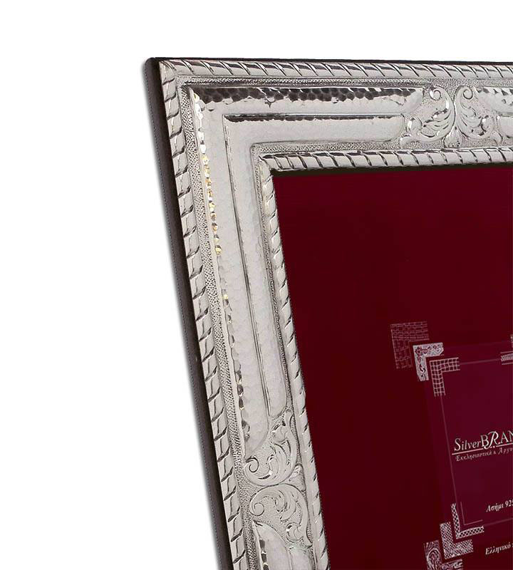 Κορνίζα Ασημένια για Φωτογραφία χειροποίητη σφυρήλατη με λούκια με φαρδιά φάσα διακοσμημένη με ανάγλυφα σχέδια, η οποία σχεδιάστηκε και κατασκευάστηκε εξ ολοκλήρου στην Ελλάδα. Είναι ιδανική για φωτογραφίες διαστάσεων 13x18cm σε οριζόντια ή κάθετη θέση με ξύλινη λουστραρισμένη πλάτη.Το ασήμι 925 έχει υποστεί ειδική επεξεργασία ώστε να παραμένει αναλλοίωτη η λάμψη του μετάλλου.Κάθε Ασημένια Κορνίζα για Φωτογραφία συνοδεύεται με εγγύηση και συσκευασία δώρου.Ένα διαχρονικό δώρο για να φυλάξετε μια ωραία στιγμή της ζωής σας ή για να χαρίσετε στα αγαπημένα σας πρόσωπα Κορνίζες Ασημένιες - Δώρο Γάμου Δείτε όλες τις Ασημένιες Κορνίζες
