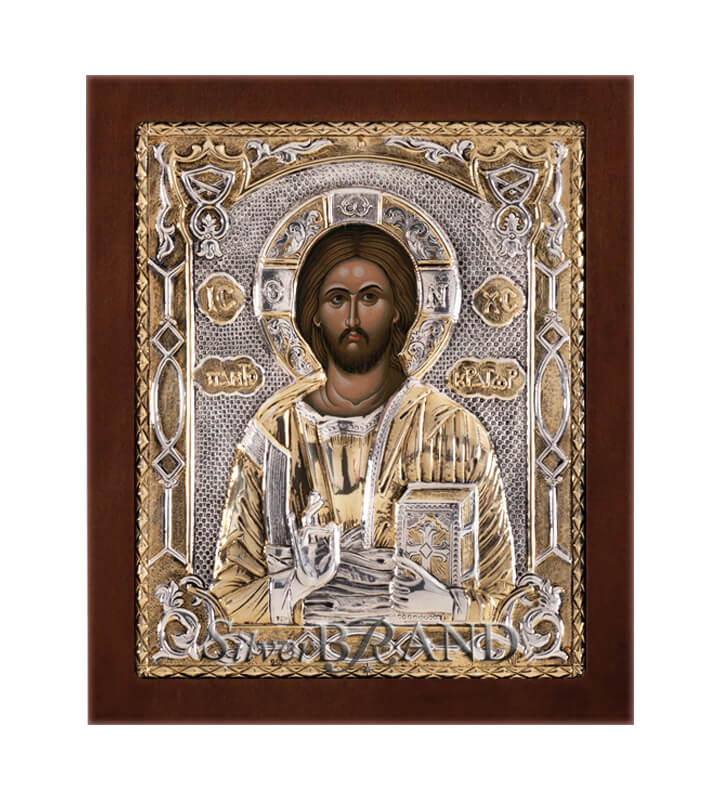 Greek Orthodox Silver Icon Christ Pantocrator 24x20cm (Gold Plated)