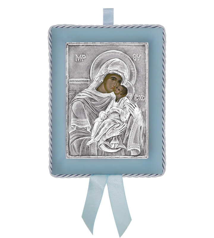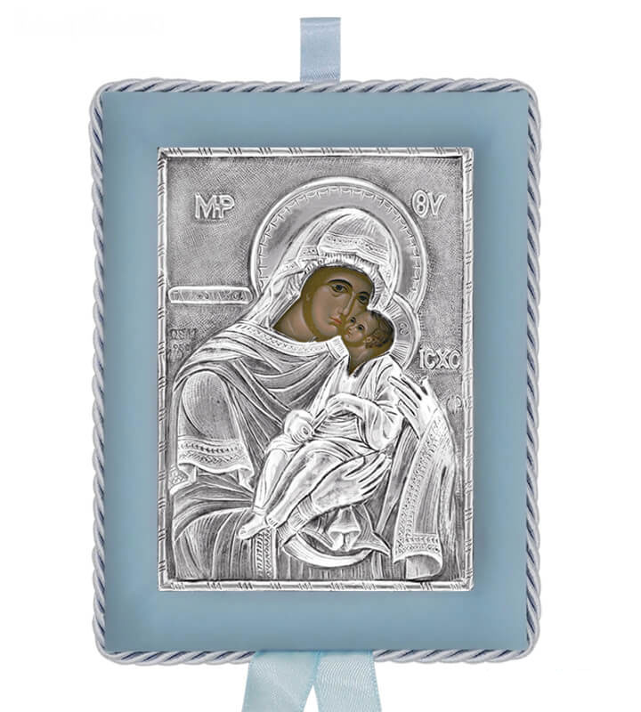 Greek Orthodox Silver Icon for Baby Boy - Virgin Mary GlykofilousaDimensions: 17x14cmAn exact copy of Byzantine silver icon depicting Virgin Mary Glykofilousa. Manufactured, with respect for tradition and attention to quality, exclusively in our workshop in Greece. Made of silver 925o.Silver has been specially treated to preserve its shine and to remain unchanged in time.Each icon has a silver certification seal 925o and it is offered in a luxurious gift box.Offered as a christening/baptism or name day gift. A timeless gift never losing its value.