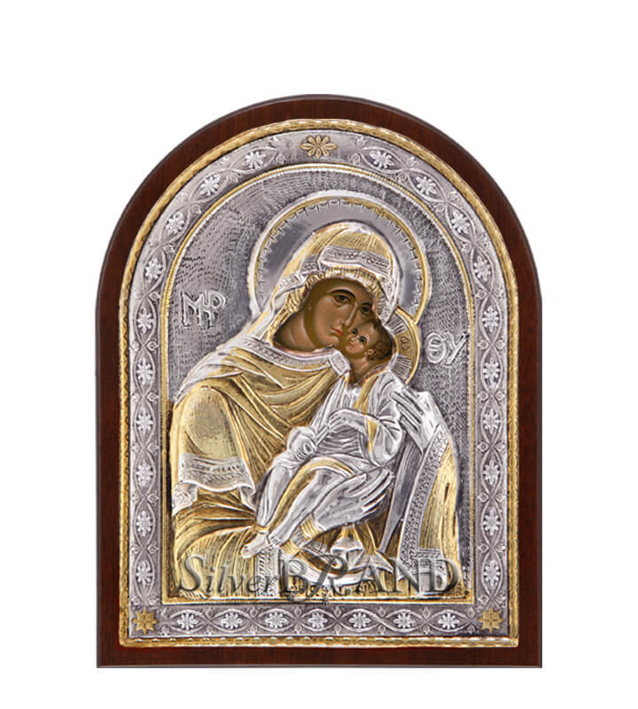 Greek Orthodox Silver Icon Virgin Mary Theotokos Glykofilousa 14x11cm (Gold Plated)