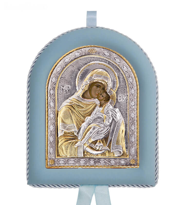 Greek Orthodox Silver Icon for Baby Boy - Virgin Mary GlykofilousaDimensions: 17x14cmAn exact copy of Byzantine silver icon depicting Virgin Mary Glykofilousa. Manufactured, with respect for tradition and attention to quality, exclusively in our workshop in Greece. Made of silver 925o.Silver has been specially treated to preserve its shine and to remain unchanged in time.Each icon has a silver certification seal 925o and it is offered in a luxurious gift box.Offered as a christening/baptism or name day gift. A timeless gift never losing its value.