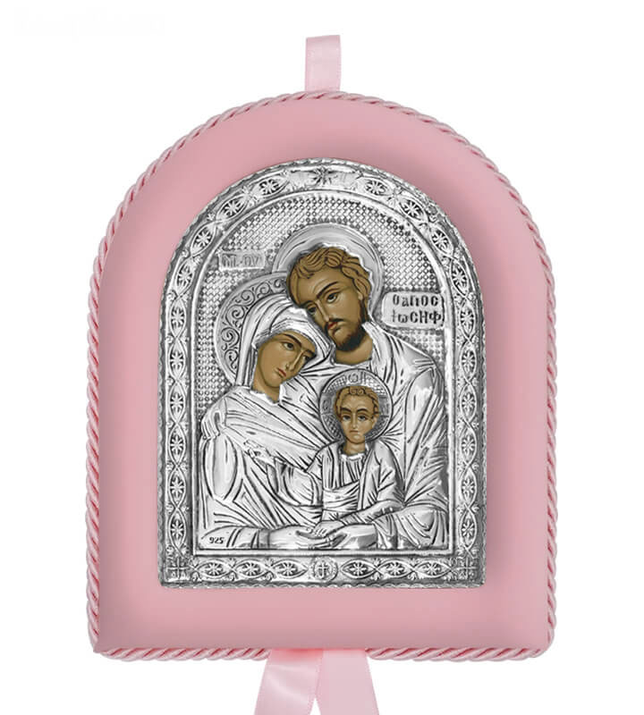 Greek Orthodox Silver Icon for Baby Girl - The Holy FamilyDimensions: 17x14cmAn exact copy of Byzantine silver icon depicting The Holy Family. Manufactured, with respect for tradition and attention to quality, exclusively in our workshop in Greece. Made of silver 925o.Silver has been specially treated to preserve its shine and to remain unchanged in time.Each icon has a silver certification seal 925o and it is offered in a luxurious gift box.Offered as a christening/baptism or name day gift. A timeless gift never losing its value.