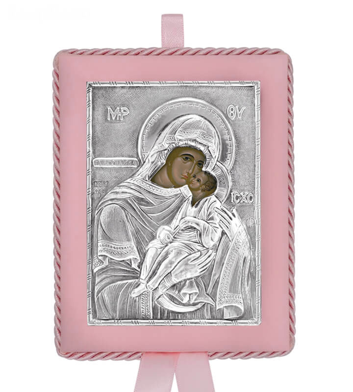 Greek Orthodox Silver Icon for Baby Girl - Virgin Mary GlykofilousaDimensions: 17x14cmAn exact copy of Byzantine silver icon depicting Virgin Mary Glykofilousa. Manufactured, with respect for tradition and attention to quality, exclusively in our workshop in Greece. Made of silver 925o.Silver has been specially treated to preserve its shine and to remain unchanged in time.Each icon has a silver certification seal 925o and it is offered in a luxurious gift box.Offered as a christening/baptism or name day gift. A timeless gift never losing its value.