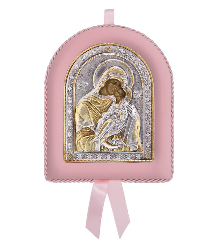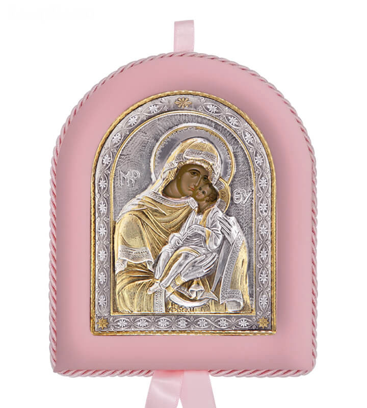 Greek Orthodox Silver Icon for Baby Girl Virgin Mary Theotokos Glykofilousa 17x14cm (gold-plated)